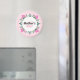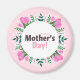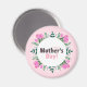 Happy Mother's day magnet decorated with pink tulips, white tiny flowers and green leaves.