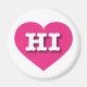 Este ímã apresenta um coração cor-de-rosa-quente vibrante contendo as letras negrito, branca, maiúsculas HI, a abreviação oficial para o Havaí, o estado de aloha.
