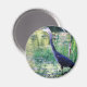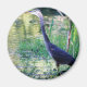 Fotografia de um herão azul em uma lagoa cercada por plantas.