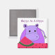 Um hipopótamo roxo legal com uma fina fatia de melancia e uma borda de melancia.