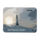 Esta imã de geladeira é do Monumento Hoad, Ulverston, e pode ser personalizada com seu nome e suas palavras. É mais propriamente chamado Monumento Sir John Barrow, e está no topo de Hoad Hill acima de Ulverston, South Lakeland, Cumbria, Reino Unido. Ela toma a forma de um farol, mas nunca foi usada como um. Esta é uma manipulação fotográfica digitalmente aprimorada do monumento na neve, com a luz do sol baixa no céu atrás do monumento. O humor é gentil e contemplativo, a paleta colorida é de cinza e branca.
