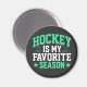 Íman de hóquei com texto verde e branco sobre fundo preto lê Hockey é a minha estação favorita!