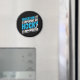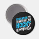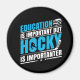 Engraçado imã temático de hóquei com texto azul e branco sobre fundo preto com a seguinte frase: Educação é importante, mas hóquei é importante!