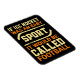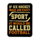 O ímã de Hockey Versus Football apresenta textos de amarelo e ouro e dois bastões de hóquei. Este ímã de hóquei lê: "Se o Hóquei no Gelo fosse um esporte fácil, seria chamado de futebol!"