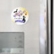 Este é um ímã Dia de as Bruxas engraçado projetado especialmente para optometristas ou qualquer pessoa na indústria de oftalmologia! Ele apresenta uma linha de etiqueta divertida "Hocus Pocus is my Focus!" junto com globos oculares e óculos, junto com as suas imagens padrão de Halloween de um morcego, um gato preto e teias de aranha! Um banner roxo de Feliz Halloween o rodeia no fundo. Totalmente divertido para qualquer um se divertir no Halloween!