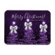Elegant Merry Christmas / Happy Holidays "Magnet" Purple Trees with bows with a custom text.