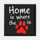 Uma peça com a citação "Casa é onde está o coração", este ímã quadrado tem as palavras "Casa é onde está a [pintura impressa]", com a pintura impressa em vermelho, representando o "coração". O presente perfeito para amantes de estimação.