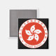 Emblema de Hong Kong. O emblema regional da Região Administrativa Especial de Hong Kong da República das Pessoas da China entrou em vigor em 1 de julho de 1997, após a transferência de soberania de Hong Kong do Reino Unido para a República das Pessoas da China. O emblema apresenta os mesmos elementos de design que a bandeira regional de Hong Kong em um ambiente circular. O anel branco externo é mostrado com a legenda do nome oficial do território em Chinês Tradicional e a abreviatura inglesa "Hong Kong".