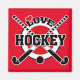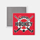 Hóquei no Amor - Tacos de hóquei cruzados e design de bola de hóquei.
