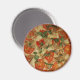Pizza vegetariana colorida em fundo vermelho. Comida favorita de saída.