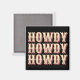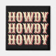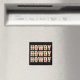 Design de texto "Howdy Howdy Howdy Howdy", estilo retrô, com letras riscadas em cores amarela, vermelha e bege