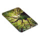 Esta foto apresenta uma visão que procura ramos verdes e exuberantes de uma árvore grande.