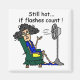 T-shirt do humor do flash quente, canecas, ímãs, botões, cartões, etiquetas, ornamento, chaveiro, e caracterizando Stella que senta-se na frente de um fã que diz está ainda quente… se os flashes contam! Se você experimentou nunca flashes quentes você encontrará estes artigos do humor do flash quente divertidos!
