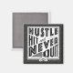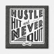 Hustle de Hóquei em Campo e Nunca Sair do Magnet. O texto diz: Hustle, Hit And Nunca Sair, com um ícone cruzado de bastões de hóquei em campo.