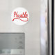 A palavra "hustle" em vermelho com sombras largas em preto. Design original.