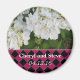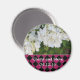 Compartilhe o seu dia especial com esta bonito hidrangea branca com folhagem verde-escura. Uma borda de profundo padrão de diamante rosa e preto ao longo do fundo. Personalize com suas informações de casamento, conforme desejado.