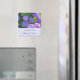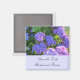 Lindas híbridos azuis e roxas com sotaque de folhagem verde-escura esta imã salve a data elegante. A cor da borda é um tom macio de azul. Personalizar conforme desejado.