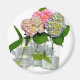 Núcleo elegante clássico, cor-de-rosa, azul e Hydrangeas verdes em jarras Mason
