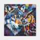 A vibrant colorful ai illustration of a wolf and an owl in a mosaic stained glass effect. A nice magnet to hang up your notes and pictures for those who love wildlife.