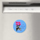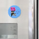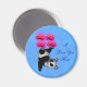 I Love You Mom magnet with a picture of a cute little panda bear juggling bright pink zinnia flowers. You can change or add any text you like. Please visit my store for more cards and gifts just for Mom.