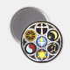 A Janela Memorial de Rehnberg foi criada por Rockford, artista do Illinois, Frank Houtkamp, em 1974, para a Igreja Universitária Unitária de Rockford, por comissão da família Axel F. Rehnberg (1883-1966), inventora e cofundadora da Rehnberg-Jacobsen Manufacturing Co. Símbolos começando no Topo e indo contra os ponteiros do relógio: Celtic Cross-Christianity Oight-Spoked Wheel-Buddhism Yin & Yang-Taoism Star do David-Judaísmo Sinal do OM-Hinduísmo Star & Crescent-Islam Chalice (centro)- Universalismo Unitário A interpolação de seis religiões principais indicou que todos partilham o mesmo desejo . O símbolo central do calado flamejante representa a vontade do Universalismo Unitário de aceitar a percepção de todas estas tradições religiosas, bem como a determinação de explorar todas as novas clamadas à verdade e à compreensão. "Uma das vantagens menos faladas de viver nesse universo é que se você desenhar um círculo e seis outros círculos idênticos a ele em cada um dos seus raios de 60° daquela mesma distância de seu centro, os seis sempre estarão da mesma distância um do outro. A matemática simples oferece várias razões e até mesmo "prova" desse fato baseado em triângulos equiláteros, linhas paralelas, etc., mas essas razões são apenas ferramentas para entender — fenômenos relacionados — mas igualmente misteriosos e improváveis. Ainda assim, há uma verdade subjacente dentro deles sem a qual eles não poderiam existir. Simbolicamente representados nos seis círculos, estão seis caminhos tradicionais que os humanos tomaram para experimentar e relembrar a verdade. Apesar de suas diferenças, todos eles estão vinculados pelas leis do universo. Como os círculos interligados, estas leis estão sobrepostas, infinitas e elusivas. Cada um é uma imagem espelhada do centro, mas cada um engloba uma variedade infinita."-Frank Houtkamp Creator of Rehnberg Window