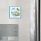 Este ímã personalizado costeiro apresenta um ônibus de van retrô em azul e branco com palmeiras tropicais. Personalize com sua escolha de nome ou texto especial.