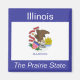 Uma imagem autêntica de qualidade superior da bandeira do Illinois, definida entre o nome do Estado e o apelido sobre um fundo de cor de bandeira.