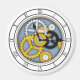 Este trabalho de arte de ilusão visual faz você acreditar que pode ver o funcionamento interno e as engrenagens deste relógio. Um design original de Mozartini, este design vai bem com uma grande variedade de figurinos e estilos decorativos, inclusive industrial e de grunge, e vai agradar aos fãs de steampunk e ficção científica.