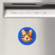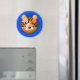 belo ímã de focinho de estimação projetado no estilo de desenho animado em um fundo azul
