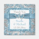Este íman de agradecimento para lembrança de casamento com padrão damasco floral em brilho FALSO azul gelo, cinza prata e branco tem uma fita e laço azul IMPRESSOS com um par de corações unidos com jóias de brilho FALSO e diamantes IMPRESSOS que combinam com os convites de casamento mostrados abaixo. O texto é personalizável para que possa alterá-lo para dizer o que quiser. Se necessitar de outros itens correspondentes neste design, por favor envie um email com o seu pedido para niteowlstudio@gmail.com.