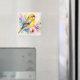 Este ímã apresenta uma obra de arte em aquarela de um pássaro canoro amarelo cercado por flores botânicas suaves em tons de rosa, azul-esverdeado e roxo.