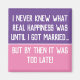 Citação de Vida Casada Engraçada. A mensagem diz: "Eu nunca soube o que era a verdadeira felicidade até me casar... mas aí já era tarde demais!"