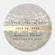 Caligrafia simples e moderna, elegante, ímã de convite de casamento na praia com dourado, oceano, areia e luzes de corda.