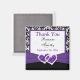Este ímã de agradecimento de casamento em damasco preto e branco tem uma fita PURPURA IMPRESSA com um par de jóias de diamante IMPRESSAS e corações unidos com brilho FALSO que combina com o convite de casamento mostrado abaixo. O texto é personalizável para que você possa alterá-lo para "Salve a Data" e enviá-lo para anunciar seu próximo casamento. Se você precisar de outros itens correspondentes neste design, envie um e-mail para niteowlstudio@gmail.com com sua solicitação.