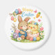 Celebre a temporada com este adorável ímã de Páscoa apresentando um coelho alegre e um pintinho cercados por ovos coloridos, flores e cenouras. O design divertido de “Feliz Páscoa” adiciona um toque festivo à sua geladeira, escritório ou qualquer superfície magnética. Perfeito como um presente de primavera, lembrancinha de festa ou decoração de feriado
