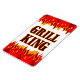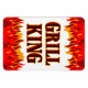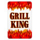 Uma imã de geladeira divertida lendo Grill King em cartas e chamas vermelhas e laranja.
