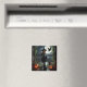 O ímã é mostrado com uma impressão artística de uma cena de bruxa assustadora de Halloween.