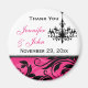 Este moderno e elegante ímã de agradecimento para casamento em tons de rosa fuchsia, preto e branco tem uma borda ornamentada com espirais e floreios rosa e preto que combina com o convite de casamento mostrado abaixo. Você também pode personalizá-lo para dizer "Salve a Data" e usá-lo para anunciar seus próximos núpcias para a família e amigos. Se houver outros itens correspondentes que você necessite, por favor envie um e-mail para niteowlstudio@gmail.com.