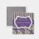 Esta faixa de casamento com listras roxa, branca e verde com damasco combina com o convite de casamento mostrado abaixo. O texto é totalmente personalizável, então você também pode alterá-lo para um ímã de "salve a data".
