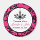 Este moderno e elegante ímã de agradecimento para casamento em tons de rosa fuchsia, preto e branco tem uma borda ornamentada com espirais e arabescos rosa e preto que combina com o convite de casamento mostrado abaixo. Você também pode personalizá-lo para dizer "Salve a Data" e usá-lo para anunciar seus próximos núpcias para a família e amigos. Se houver outros itens correspondentes que você necessite, envie um e-mail para niteowlstudio@gmail.com com sua solicitação.