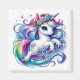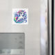 Este ímã quadrado é exibido com uma impressão de arte de um unicórnio mágico fofo.
