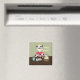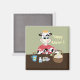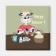 Um pequeno ímã de geladeira fofo com uma vaca de desenho animado (chamada Snowbell) pintando alguns ovos de Páscoa. O texto diz "Felz pascoa!" Mas sinta-se à vontade para substituí-la pela sua.