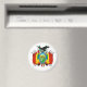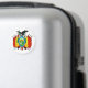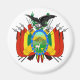 Casaco de armas da Bolívia. A casaco de braços da Bolívia tem uma cartouche central rodeada por bandeiras, mosquetes, galhos de louros bolivianos, e tem um condor andino no topo. O cartouche central tem uma fronteira com dez estrelas no fundo, que simbolizam os nove Departamentos e a antiga província Litoral que foi tomada pelo Chile em 1879, e o nome da Bolívia no topo. Dentro da fronteira, a montanha de prata Potosí - reconhecida pela entrada de uma mina - é representada, com uma ascensão de sol acima dela, e com uma alpaca parada ao lado de uma palmeira e algum trigo. A alpaca fica em uma planície que contrasta com a montanha. A montanha e seu contraste com as planícies são indicativos da geografia da Bolívia. A alpaca é o animal nacional, e os itens ao seu lado são simbólicos dos recursos da nação. Ao redor do escudo há três bandeiras bolivianas em cada lado. Por trás deles estão dois pares de espingardas cruzadas que simbolizam a luta pela independência. Ao lado dos mosquetes há um machado e um capô vermelho de Phrygian, que é o símbolo da liberdade e liberdade. Os ramos de louros são simbólicos da paz, e o condor que paira sobre o escudo é simbólico de uma vontade de defender a nação e sua liberdade. Em algumas representações desse casaco de braços, os dois pares de mosquetes são substituídos por dois canhões. Outras representações também têm símbolos mais realistas no escudo.