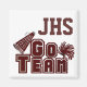 O ímã marrom e de prata feito sob encomenda do espírito da escola do tom, com o excelente que olha gráficos do megafone marrom e de um pom do pom que senta-se sobre o texto gráfico marrom que lê VAI EQUIPE. O texto marrom na parte superior tem iniciais do segundo grau e é customizável ler qualquer coisa que você quer. Excelente para a casa ou em seu cacifo da escola.