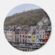 Fotografia paisagística de Dinant, nas margens do rio Meuse, num dia nublado, na região da Valônia, na Bélgica.