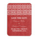 Imã salve a data elegante e sofisticada da Boêmia Moderna com uma única borda de espiral e um papel vintage parecem fundo em vermelho. Este na moda é perfeito para anunciar seu casamento com temas asiáticos ou boêmicos. Fácil de personalizar, basta adicionar os detalhes do casamento nos campos de texto fornecidos. Clique em "Personalizar" para encontrar mais opções de personalização.