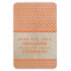 Moderno com uma reviravolta vintage é este Chic Chevron Save the Date Premium Magnet. Este design apresenta um plano de fundo de aparência de papel antigo e um padrão de gesso zigzag em laranja. Fácil de personalizar, simplesmente adicione seus detalhes de casamento. Clique em "Personalizar" para encontrar mais opções de personalização.