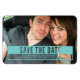 Simples, mas moderna, Imã salve a data moderna de corte na turquesa, com um design de tipografia nítida com texto recortado. Esta imã salve a data elegante é fácil de personalizar com uma fotografia fofa e os detalhes do seu casamento. Clique em "Personalizar" para encontrar mais opções de personalização.