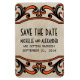 Rochas Góticas Elegantes e Chic Salvem o Magnet Premium com um fundo bege texturizado vintage e bordas onduladas florescem em laranja. Este design antigo é perfeito para anunciar seu gótico ou casamento vintage. Fácil de personalizar, basta adicionar os detalhes do casamento nos campos de texto fornecidos. Clique em "Personalizar" para encontrar mais opções de personalização.