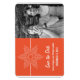 Anuncie seu casamento sobre o tema do inverno ou feriado com esta Foto Doce Floco de Neve. Salve o Magneta Premium. Apresentando um delicado e elegante floco de neve branco e faixa fina sobre um fundo laranja sólido, este design divertido é fácil de personalizar. Basta adicionar sua própria foto e detalhes do casamento nos campos de texto fornecidos ou clicar em "Personalizar" para encontrar mais opções de personalização.